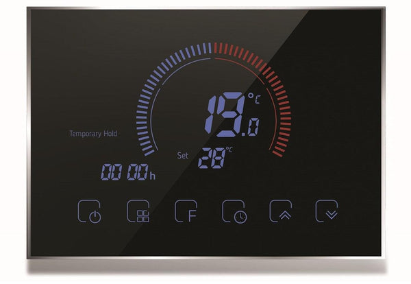 Mūsdienīgajam termostatam ar lielu skārienekrāna stikla ekrānu ir WIFI savienojamība un iespēja izveidot savienojumu ar viedierīcēm, kas atbalsta Android vai iOS operētājsistēmas. Iestatījumus var ievadīt manuāli vai viedierīcē īpašā sīkrīkā.